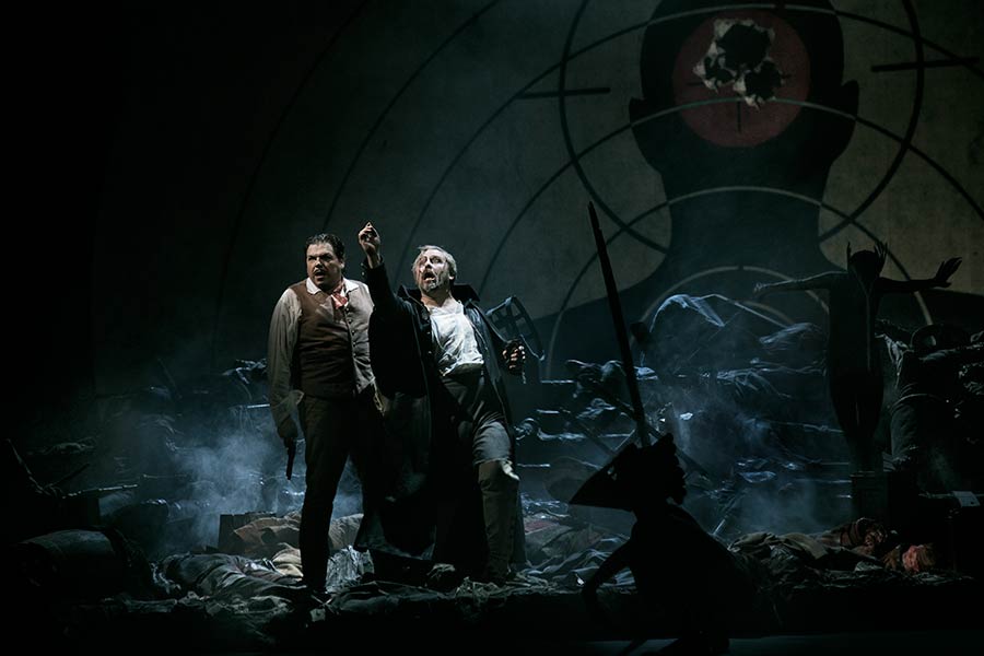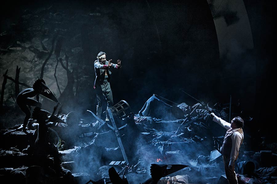 ’Jægerbruden’ er farver, fantasi og djævelsk cirkus for Kasper Holtens og hans scenograf Es Devlin. Et skydetelt i verdensudgave på Operaen.