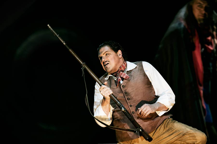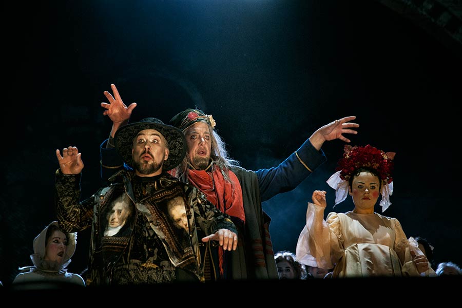 ’Jægerbruden’ er farver, fantasi og djævelsk cirkus for Kasper Holtens og hans scenograf Ed Devlin. Et skydetelt i verdensudgave på Operaen.