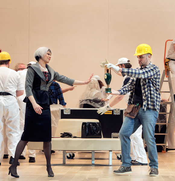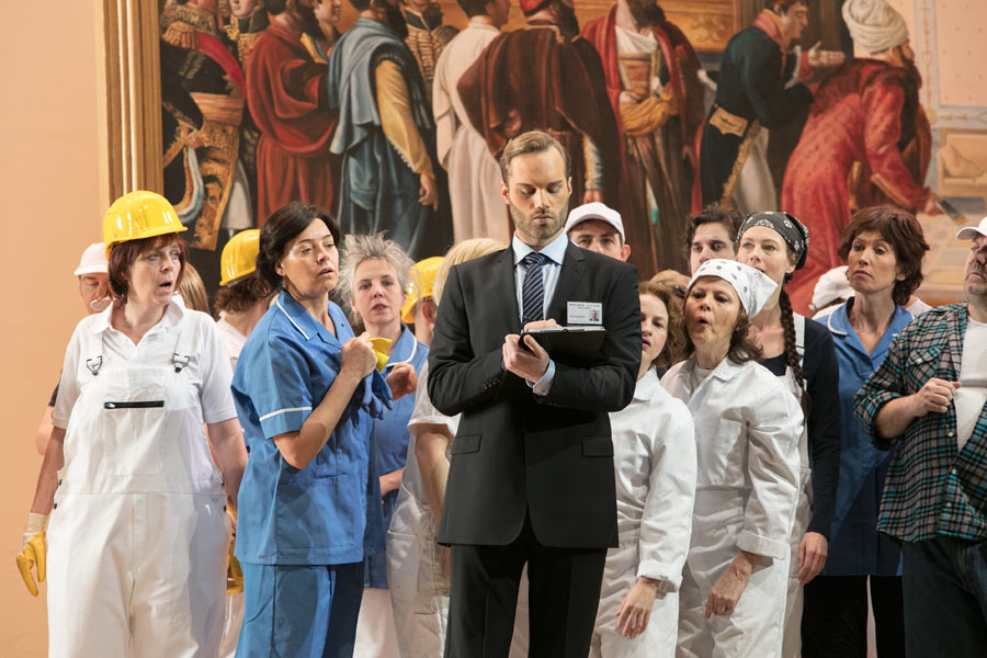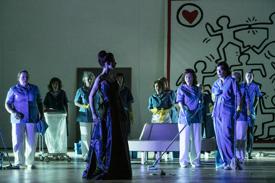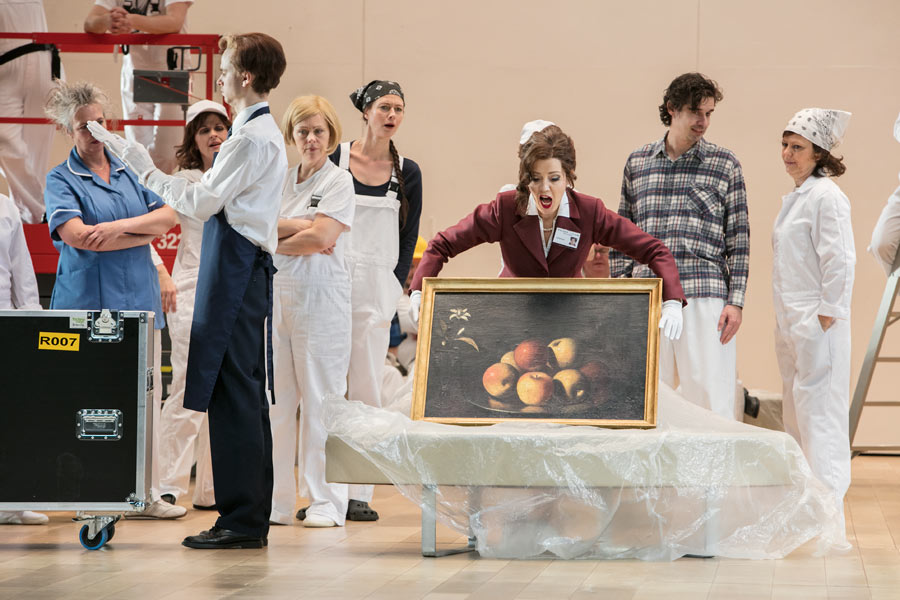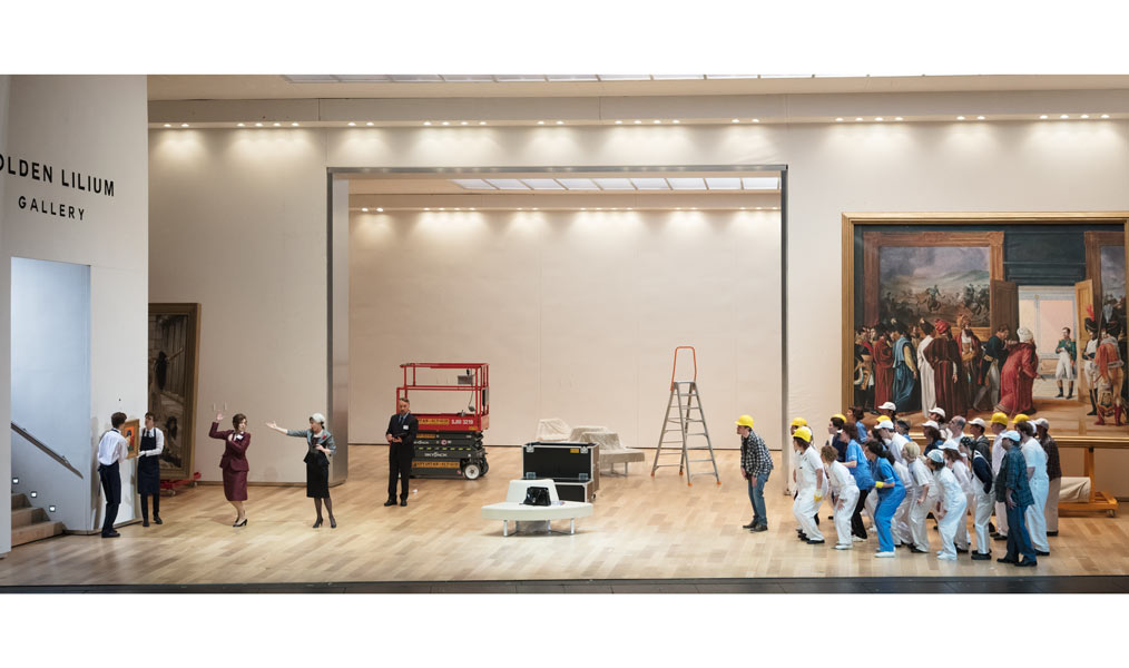 I den italienske instruktør Damiano Michieletto version starter vi på et eksklusivt kunstgalleri anno 2017. Galleriets rige ejer, Madame Cortese, og hendes personale arbejder på at få galleriet klar til åbningen af en stor udstilling. Men intet er færdigt: Galleriet ligner en byggeplads – og for at gøre forvirringen total træder figurer fra galleriets malerier ud af deres rammer, flakker om og mænger sig med ansatte og gæster.