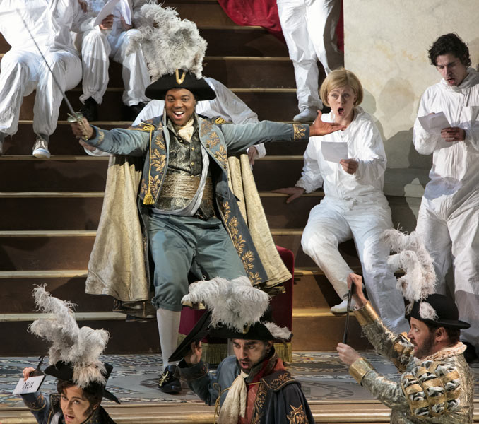 Rejsen til Reims synges på italiensk med danske overtekster.