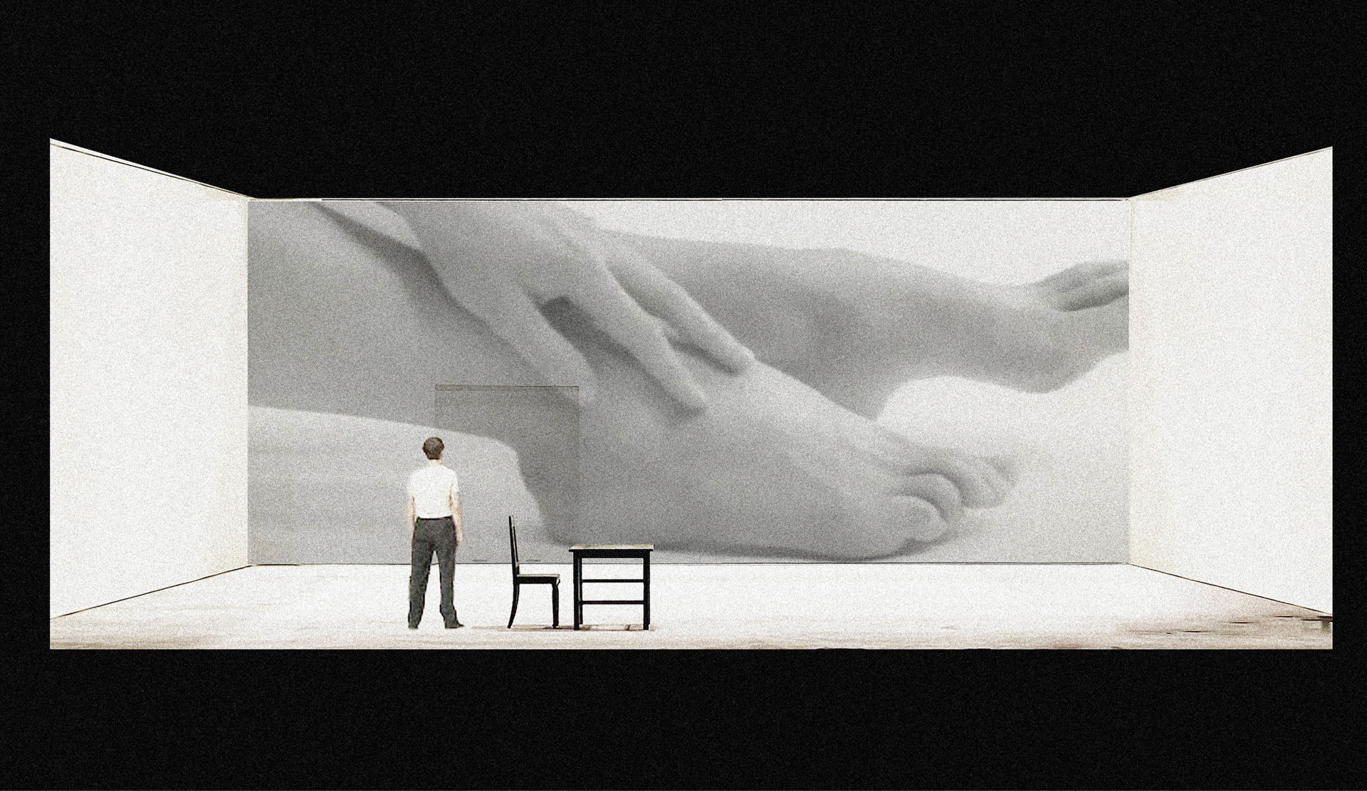 Alt udfolder sig inden for denne nøgne arkitektur, hvor hver en bevægelse, hvert et blik og hvert et åndedrag forstørres. Det er en undersøgelse af kroppen som både instrument og potentiale, for i denne ramme afsløres både det absurde og det skrøbelige ved det at være menneske.