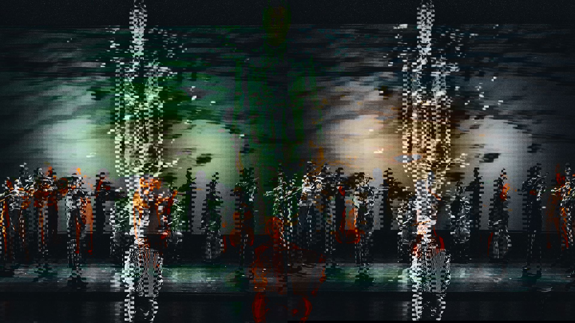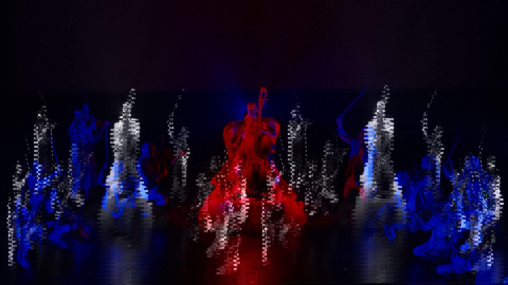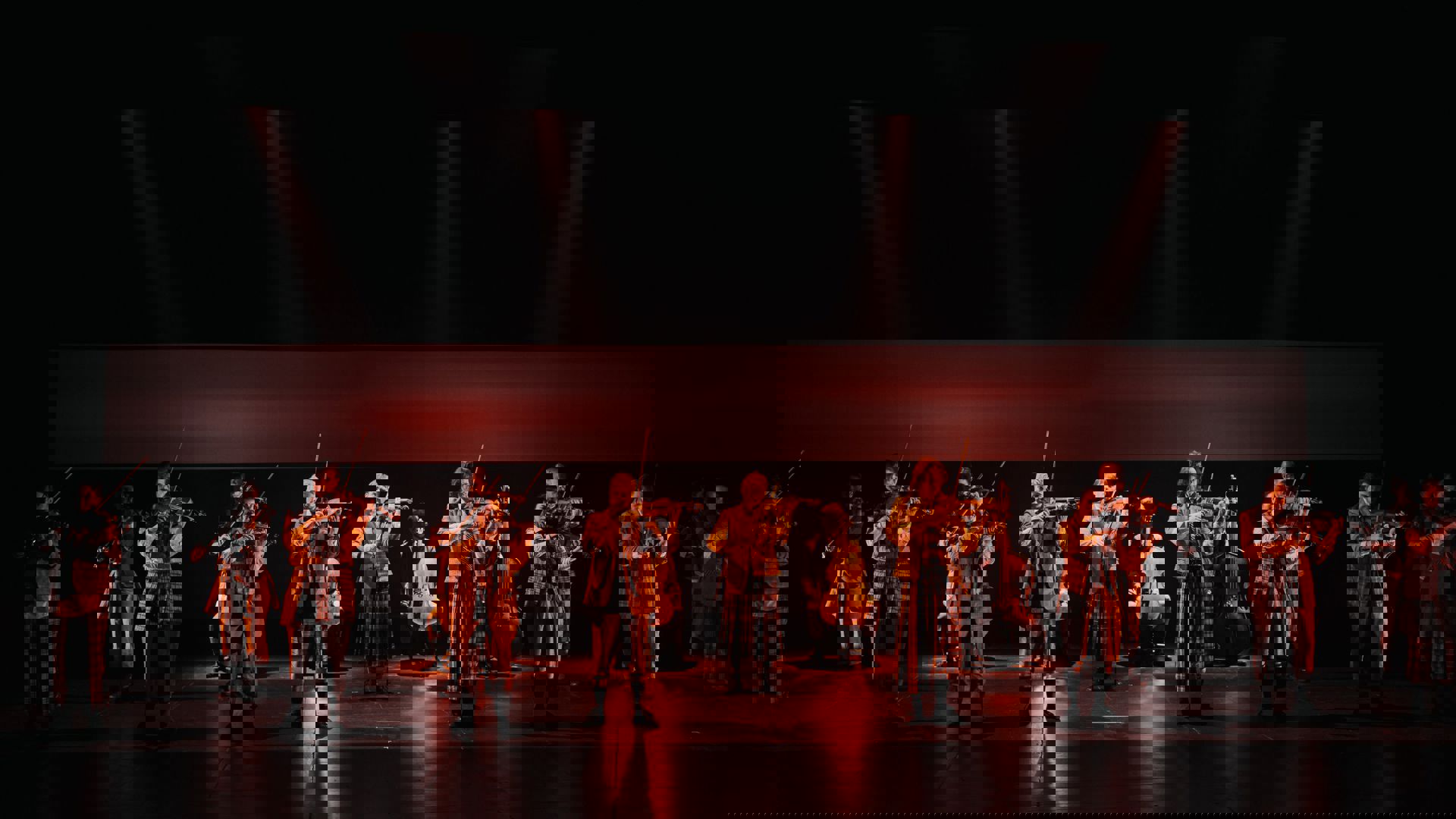 Det Norske Kammerorkesters 18 nordiske solister har forladt noder og nodepult og kastet sig ud i en poetisk, rørende, komisk, uhyggelig og rasende dans med Shostakovich musik i magisk scenografi og lyssætning.