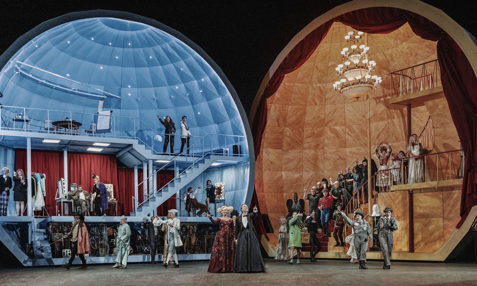 Læs om Det Kongelige Kapel, Den kongelige Opera, Den Kongelige Ballet og Det Kongelige Skuespil og få indblik i de fire kunstarter, der udgør scenekunsten på teatret.