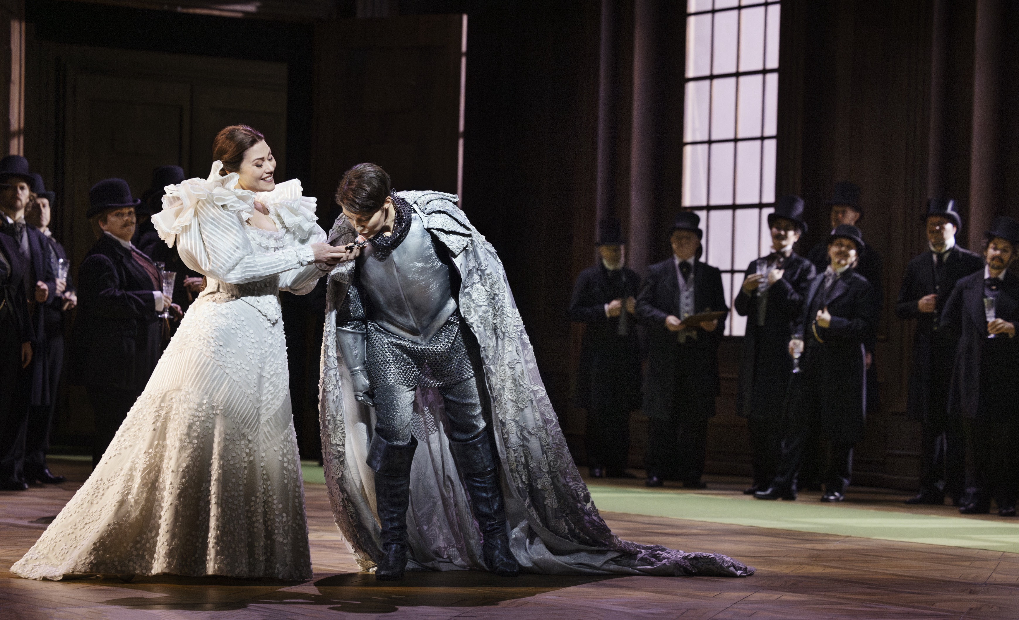 Scenograf Julia Hansen lader Rosenkavaleren foregå i et univers, der emmer af handel, cigarrøg og mahogni-indhyllede mandeklubber, og Anja Vang Kragh skaber forestillingens forrygende kostumer. Den tyske bas Patrick Zielke er en af tidens bedste i rollen som Baron Ochs, Gisela Stille er Marie Therese, og Octavian og Sophie synges af Elisabeth Jansson og Clara Cecilie Thomsen.