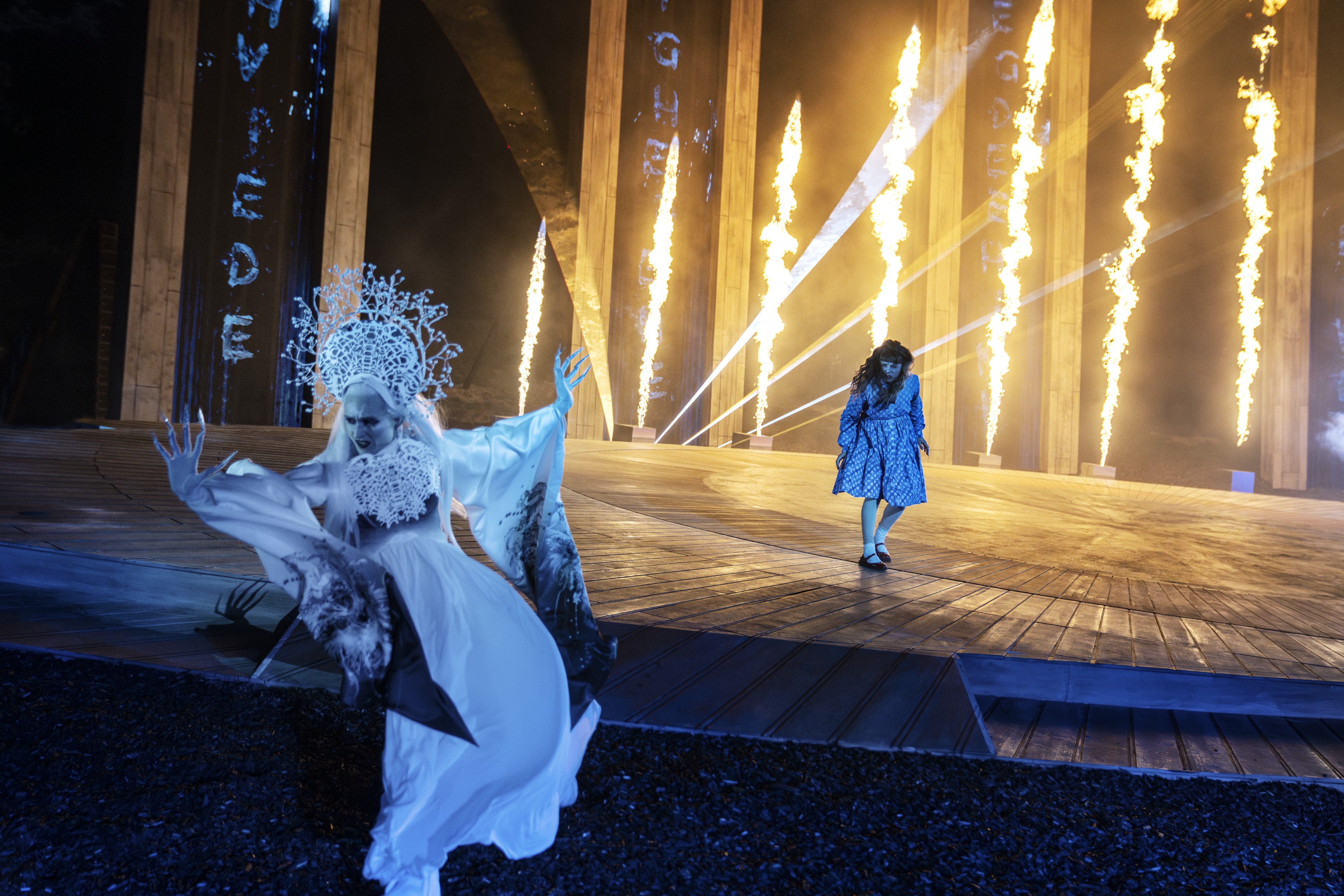 Kim Fupz Aakeson genskriver H.C. Andersens eventyr til en spektakulær udendørsforestilling i fortællingen om at gå gennem ild og vand for den, man elsker. Nicolei Faber iscenesætter eventyret som en rejse gennem verdener fyldt med magi, farer og mystik.